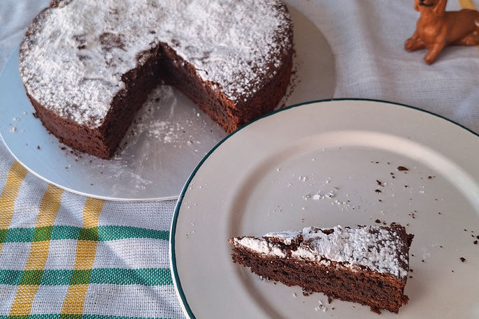 Pastel elaborado con harina de almendras y chocolate amargo.